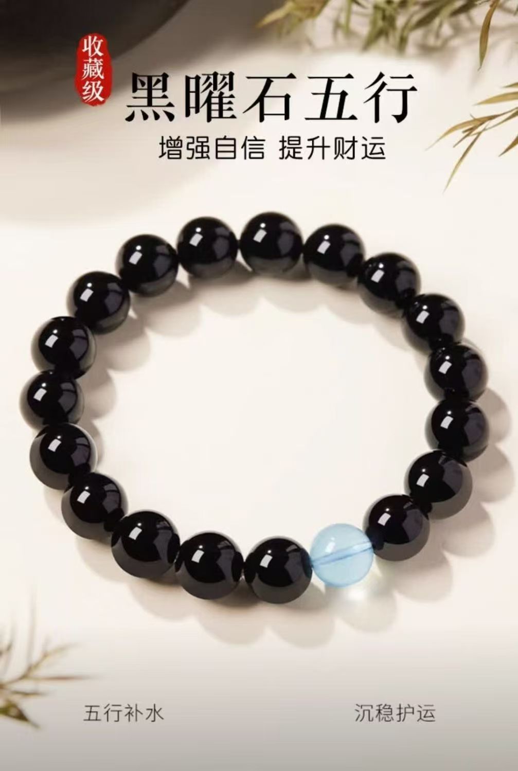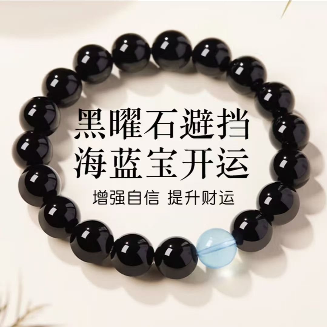 - 五行補水:海藍寶為水行至寶,搭配黑曜石固本培元,專為五行缺水緣主補足水行能量,調和五行平衡;